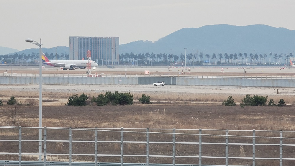 따뜻하게 몸도 녹였으니 옥상으로 올라가 보았어요 테라스에서 보이는 인천공항 활주로인데요  인천공항에서 10년 가까이일했지만 이런 곳을 이제야 알았다니요 눈앞에서 착륙하는 비행기를 보며 우와~하며 신기해하는 아이들과 영상을 찍고 있는 어른들까지도 지켜보는 재미있어요 ㅎ