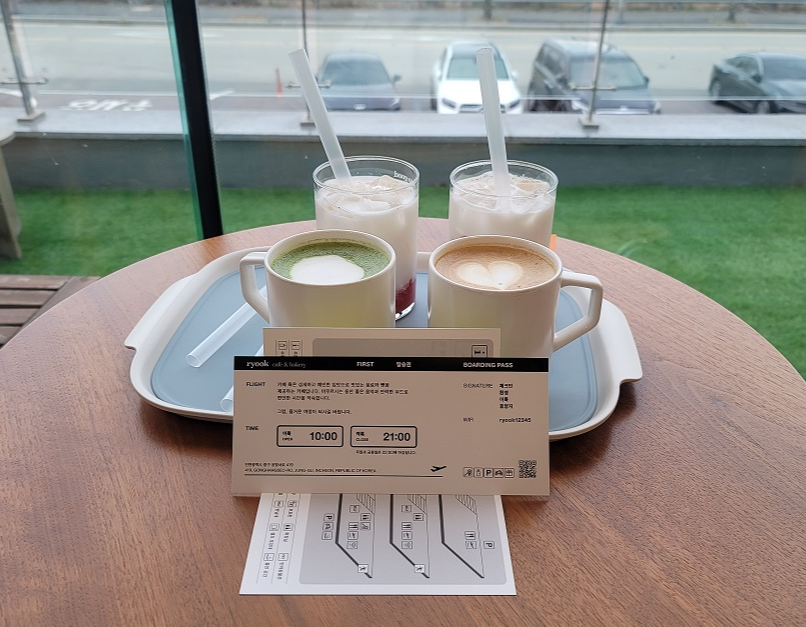 이색적인 카페답게 이곳에서는 커피와 함께 탑승권이 나오는데요 창밖을 바라보면 이륙하고 착륙하는 비행기를 보고 있으니 커피 마시며 탑승시간을 기다리는 여행객이 된 듯한 즐거움이 있었답니다